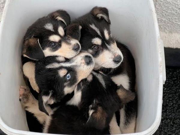 总部位于斯图尔特斯敦的中阿尔斯特狗狗领养中心在他们的Facebook页面上发布了一张照片,照片中四只小狗被关在一个纸板箱里。